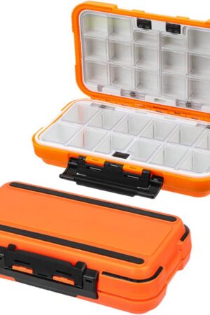 Fishing Lure Box, Waterproof Portable Lightweight Tackle Storage Box with Rubber Shock Absorber, Plastic Fishing Accessories Box for Angler (Orange L)