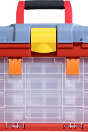 Fishing Tackle Box: Portable Storage Tool Box with 4 Drawers and 19 Compartments Each for Hardware, Fish Tackle, Beads and more, Red