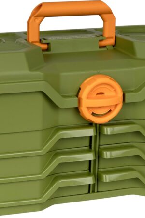 6/0 Large Tackle Box, 6 Pivot Trays, 32 Compartments, Advanced Tackle Storage Organizer, Green