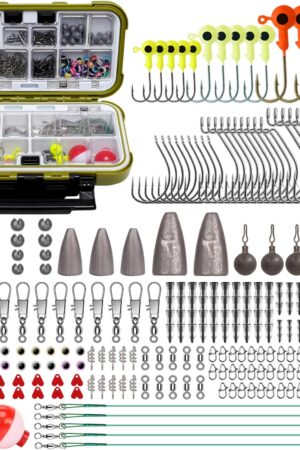 187/343pcs Fishing Accessories Kit, Organized Fishing Tackle Box with Tackle Included, Fishing Hooks, Fishing Weights Sinkers, Fishing Gear and Equipment, Fishing Gift for Men