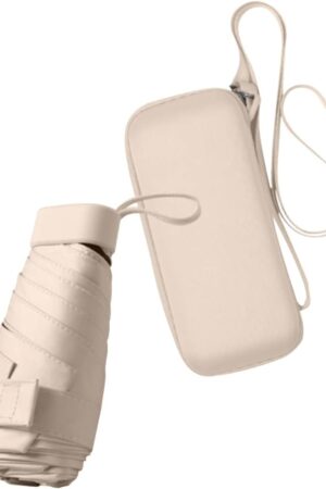 Mini Travel Sun Umbrella for Purse With Case,Small Compact UV Umbrella Protection Sun,Lightweight Portable Parasol Windproof for Women Men Kids (Beige)