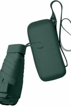 Mini Travel Sun Umbrella for Purse With Case,Small Compact UV Umbrella Protection Sun,Lightweight Portable Parasol Windproof for Women Men Kids (Dark green)