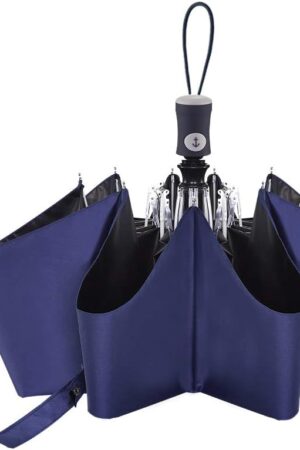46 Inch UPF 50+ UV Protection Large Travel Umbrella with Wooden Handle, 12 Fibreglass Ribs Super Windproof Sun Blocking Folding Umbrella Auto Open Close