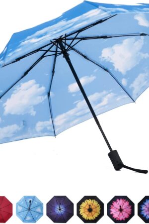 Sun Umbrella Compact Folding Travel Umbrella Auto Open and Close for Windproof, Rainproof & 99.9% UV Protection Parasol with Black Anti-UV Coating