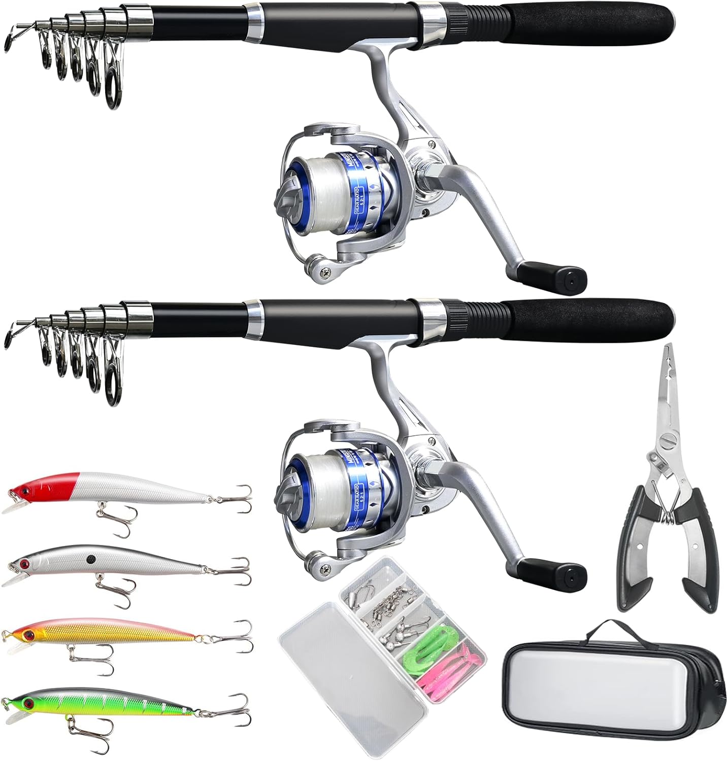 • 【2 x Carbon Fiber Fishing Rods】 High density carbon fiber material makes the fishing rod hard and durable, telescopic design for conveniently carrying around.