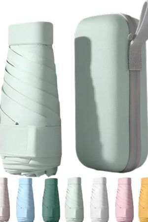 UPF50+ Mini Travel Umbrella 15cm – Windproof Compact Parasol with Zippered Case (225g for Hiking/Pocket), UV Protection & Multi-Functional Key Holder