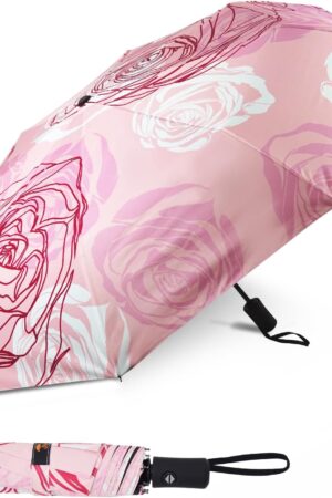 UPF 50+ UV Protection Travel Umbrella 42 Inch Lightweight Sun Rain Folding Umbrellas Auto Open Close (Flower)